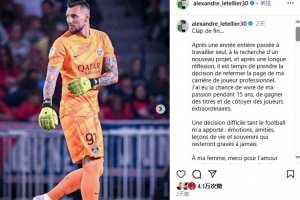 體育資訊10月15日訊 34歲前巴黎圣日耳曼門將萊特利爾在社媒宣布,結(jié)束15年的職業(yè)生涯。