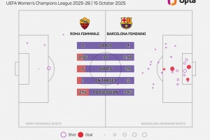 據(jù)Opta統(tǒng)計,巴薩女足本賽季開局各賽事9連勝,打進48球,僅丟2球,場均進球超過5粒。