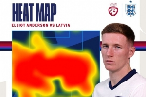 此役埃利奧特-安德森踢滿全場,幫助英格蘭取勝。英格蘭隊社媒曬出埃利奧特-安德森本場比賽的熱區(qū)圖片,這位中場球員的覆蓋范圍極大。