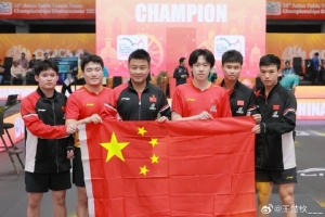 體育資訊10月16日訊 乒乓球亞錦賽男團(tuán)決賽,中國隊(duì)對陣中國香港,國乒男團(tuán)大比分3-0橫掃中國香港奪得冠軍。