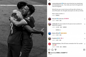 體育資訊7月3日訊 利物浦前鋒若塔因車禍不幸離世,隊(duì)友索博斯洛伊也在社媒曬出兩人昔日合照悼念。