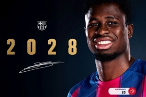 體育資訊10月16日訊 巴薩官方宣布和18歲后衛(wèi)蘭德里-法雷(Landry Farré)續(xù)約兩年至2028年,俱樂部青訓(xùn)負(fù)責(zé)人霍安-索勒(Joan Soler)和青訓(xùn)足球總監(jiān)何塞-拉蒙-阿萊克??疲↗osé Ramón Alexanco)出席了續(xù)約儀式。