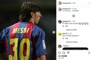 梅西發(fā)布了一張他身穿巴薩30號(hào)球衣的經(jīng)典舊照,并配文寫(xiě)道:“已經(jīng)21年了……難以置信?!?/p>