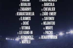 體育資訊10月17日訊 北京時間明天凌晨2點45分,巴黎將在法甲第8輪比賽中主場對陣斯特拉斯堡,巴黎公布了此役的球員名單,克瓦拉茨赫利亞、杜埃回歸,登貝萊、馬爾基尼奧斯、法比安-魯伊斯、內(nèi)維斯繼續(xù)缺席。