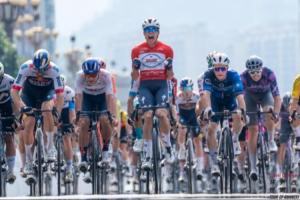 隨著比賽進(jìn)入后半程,主集團(tuán)逐步提速,突圍集團(tuán)在最后30公里被追回。馬尼耶憑借連續(xù)四場賽段勝利,繼續(xù)身披三件領(lǐng)騎衫——象征個人總成績領(lǐng)先的紅衫、沖刺積分領(lǐng)先的藍(lán)衫、以及青年最佳的白衫。阿爾凱亞-B&B酒店車隊的西蒙·居列爾米繼續(xù)保有象征爬坡王的圓點(diǎn)衫;迪卡儂AG2R車隊的斯坦·德伍爾夫憑借積極突圍獲得本賽段敢斗獎。