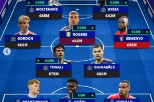 中場:戈登(紐卡,6500萬歐元)、托納利(紐卡,7500萬歐元)、摩根-羅杰斯(維拉,6500萬歐元)、吉馬良斯(紐卡,8000萬歐元)、塞梅尼奧(伯恩茅斯,5500萬歐元)