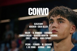 體育資訊10月18日訊 北京時(shí)間今天22點(diǎn)15分,巴薩將在西甲第9輪比賽中主場對陣赫羅納,巴薩公布了此役的球員名單,亞馬爾、拉什福德、費(fèi)爾明在列,萊萬、拉菲尼亞、費(fèi)蘭-托雷斯、奧爾莫、霍安-加西亞、加維缺席。
