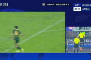 體育資訊10月18日訊 中超第27輪,浙江坐鎮(zhèn)主場(chǎng)對(duì)陣山東泰山,主裁親自回看VAR,沒有判罰浙江球員禁區(qū)內(nèi)手球犯規(guī),目前比分仍為0-0