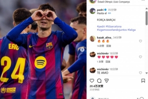 本場比賽佩德里打進精彩進球,賽后他也在社媒曬出慶祝進球照片,配文寫道:“直到最后,加油巴薩!”