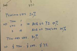 則BLG:遇到T1概率為36.7%,遇到TSW/VKS概率各為31.7%