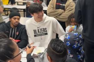 開拓者今日全隊參與社區(qū)活動,小吧也來到了現(xiàn)場,發(fā)現(xiàn)楊瀚森真的很招小球迷們的喜愛。很多小孩子圍著楊瀚森轉(zhuǎn),小楊笑得也很開心。