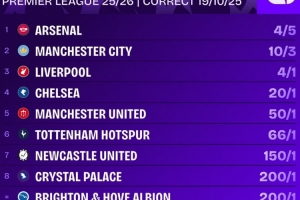 英超聯(lián)賽25/26賽季冠軍賠率