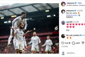 賽后,此役閃擊破門的姆貝莫更新社媒慶祝勝利,他寫道:關鍵的客場勝利??