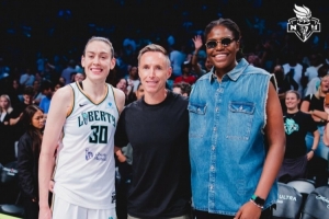 體育資訊7月4日訊 在今天紐約自由人主場89-79擊敗洛杉磯火花的比賽中,NBA名宿納什來到了現(xiàn)場觀戰(zhàn)。而在賽后自由人隊(duì)的斯圖爾特以及瓊奎爾-瓊斯都與納什熱情寒暄,而有意思的是在與兩人的合影中,納什反而成為了身高最矮的那一個。