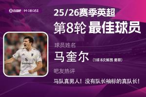 2025-2026賽季英超火熱進(jìn)行中,體育資訊和咪咕體育聯(lián)合發(fā)起每輪英超最佳球員評選活動!第8輪評選結(jié)果出爐,馬奎爾雙紅會8次解圍+致勝頭球,幫助曼聯(lián)2-1擊敗利物浦,紅魔終結(jié)近10年客戰(zhàn)利物浦不勝紀(jì)錄,馬奎爾贏得吧友超14萬+的投票,當(dāng)選【體育資訊X咪咕體育英超第8輪最佳球員】!