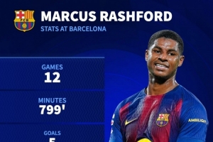 據(jù)德國轉(zhuǎn)會市場統(tǒng)計,拉什福德加盟巴薩以來出戰(zhàn)12場比賽,出場時間799分鐘,打進5球,助攻6次,平均每90分鐘參與1.24球。