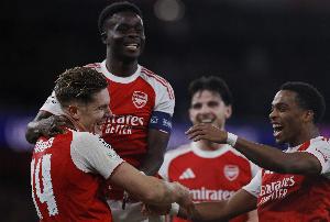 阿森納在酋長(zhǎng)球場(chǎng)以一場(chǎng)統(tǒng)治性表現(xiàn)擊敗馬德里競(jìng)技,歐冠繼續(xù)保持全勝。約克雷斯梅開(kāi)二度,加布里埃爾頭球破門,馬丁內(nèi)利精彩終結(jié),這場(chǎng)4-0的勝利讓阿爾特塔的球隊(duì)三戰(zhàn)積九分。盡管最終比分懸殊,但半場(chǎng)結(jié)束時(shí)仍是0-0,埃澤的折射擊中橫梁,拉亞的失誤險(xiǎn)些讓馬競(jìng)進(jìn)球。下半場(chǎng)阿爾瓦雷斯遠(yuǎn)射擊中橫梁,但隨后阿森納在14分鐘內(nèi)連入四球。