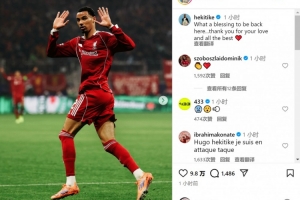 埃基蒂克攻破老東家球門(mén)后沒(méi)有慶祝,他在社交媒體上曬出比賽照片,配文:“能夠回到這里真是太好了(上天的恩賜),感謝你們的愛(ài),祝一切順利?!?/p>