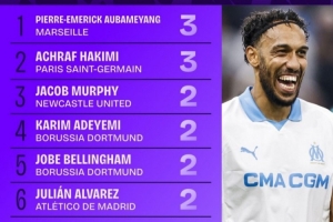 體育資訊10月23日訊 本賽季歐冠聯(lián)賽階段已戰(zhàn)罷3輪,Squawka統(tǒng)計了到目前為止的助攻榜,馬賽前鋒奧巴梅揚和巴黎后衛(wèi)阿什拉夫均是3次助攻,分列前二。