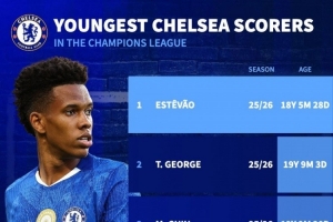 體育資訊10月23日訊 德國轉(zhuǎn)會市場列出了切爾西隊史歐冠最年輕進(jìn)球者排名,埃斯特旺居首。