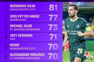 體育資訊10月23日訊 本賽季歐冠聯(lián)賽階段已戰(zhàn)罷3輪,Squawka統(tǒng)計(jì)了到目前為止球員完成進(jìn)攻三區(qū)傳球次數(shù)榜,曼城中場(chǎng)B席81次第一,博德閃耀攻擊手海于格77次第二。