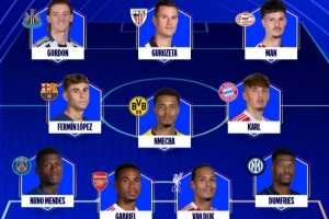 體育資訊10月23日訊 歐冠第3輪已經(jīng)完賽,歐冠官方也評(píng)出了本輪最佳陣容,本輪官方最佳球員費(fèi)爾明領(lǐng)銜。