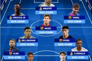 體育資訊10月24日訊 本周末,西甲將上演萬眾矚目的西班牙國家德比。德國轉(zhuǎn)會市場盤點了皇馬和巴薩球員歷史身價最高陣,梅西、姆巴佩、亞馬爾等悉數(shù)在列。