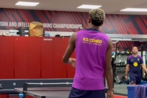亞馬爾社媒曬訓(xùn)練之余與科亨進(jìn)行乒乓球?qū)Q的視頻,這位巴薩邊鋒占據(jù)上風(fēng),他配文調(diào)侃:“我的兒子(甜心)。”