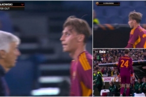 體育資訊10月24日訊 據(jù)《羅馬體育報(bào)》報(bào)道,20歲羅馬后衛(wèi)齊奧爾科夫斯基不滿自己在上半場(chǎng)就被早早換下。