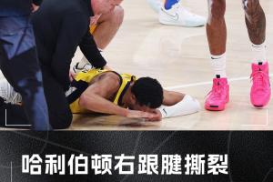 體育資訊06月24日訊 名記Shams報(bào)道,總決賽搶七大戰(zhàn)遺憾傷退的哈利伯頓遭遇右跟腱撕裂。