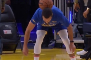 庫(kù)里大秀足球技巧脖子接球 logo shot穩(wěn)穩(wěn)命中