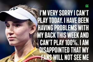 關(guān)于退賽和傷情,萊巴金娜表示:“非常抱歉,我今天無(wú)法上場(chǎng)比賽。這周我的背部一直感到不適,無(wú)法以100%的狀態(tài)競(jìng)技。很遺憾今天球迷們無(wú)法看到我打球,但期待明年和大家見(jiàn)面?!?/p>