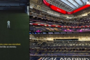 這則宣傳片拍攝于伯納烏球場(chǎng)可伸縮草坪的空間,一線隊(duì)球員貝林厄姆、迪亞斯、阿諾德和馬斯坦托諾出鏡,穿梭于充滿未來(lái)感和金屬質(zhì)感的黑暗場(chǎng)景中,象征著俱樂(lè)部神話起源于此,歷史在此搏動(dòng)。視頻旁白采用了“神秘而雄心勃勃”的語(yǔ)言,如“偉大要求一切。它從不隱藏。它每天早晨都會(huì)奮起”,并結(jié)合新伯納烏可伸縮頂棚的畫(huà)面,配以“像太陽(yáng)一樣不知疲倦”的臺(tái)詞。