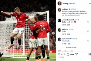 他也在賽后通過(guò)社媒曬出自己和隊(duì)友們的慶祝照,并配文:“又一場(chǎng)重要?jiǎng)倮?!我們繼續(xù)齊心協(xié)力,一場(chǎng)一場(chǎng)來(lái)!”