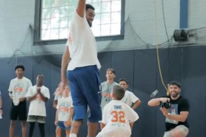 跟喝水一樣簡單!??怂狗磽綦S手一拋 文班輕輕跳起空接放籃