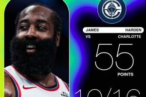 前三科詹庫(kù)!哈登36歲89天砍下55分 成NBA歷史第4老的55+先生