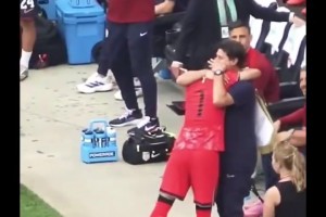 有點(diǎn)喜感尼科回追時(shí)拉拽薩默維爾染黃,被后者一把“推飛”