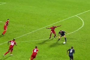 有點喜感尼科回追時拉拽薩默維爾染黃,被后者一把“推飛”