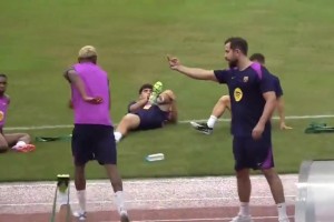 齊米卡斯和在做報道的皮耶羅互相傳球,卡佩羅幽默點評:傳錯人了