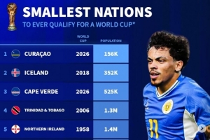 德轉(zhuǎn)列世界杯人口最少國:庫拉索15.6萬破冰島紀(jì)錄,佛得角52.5萬