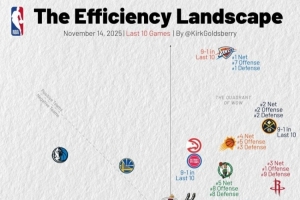 各隊凈效率&攻防效率排名!凈效率&防守效率雷霆第1 進攻火箭第1