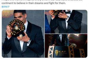 當(dāng)選非洲足球先生!阿什拉夫社媒:希望孩子們堅(jiān)信夢想并為之奮斗