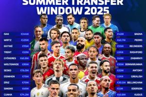 德轉(zhuǎn)列英超夏窗最貴陣:伊薩克領(lǐng)銜紅軍5將,沃爾特馬德&埃澤在列